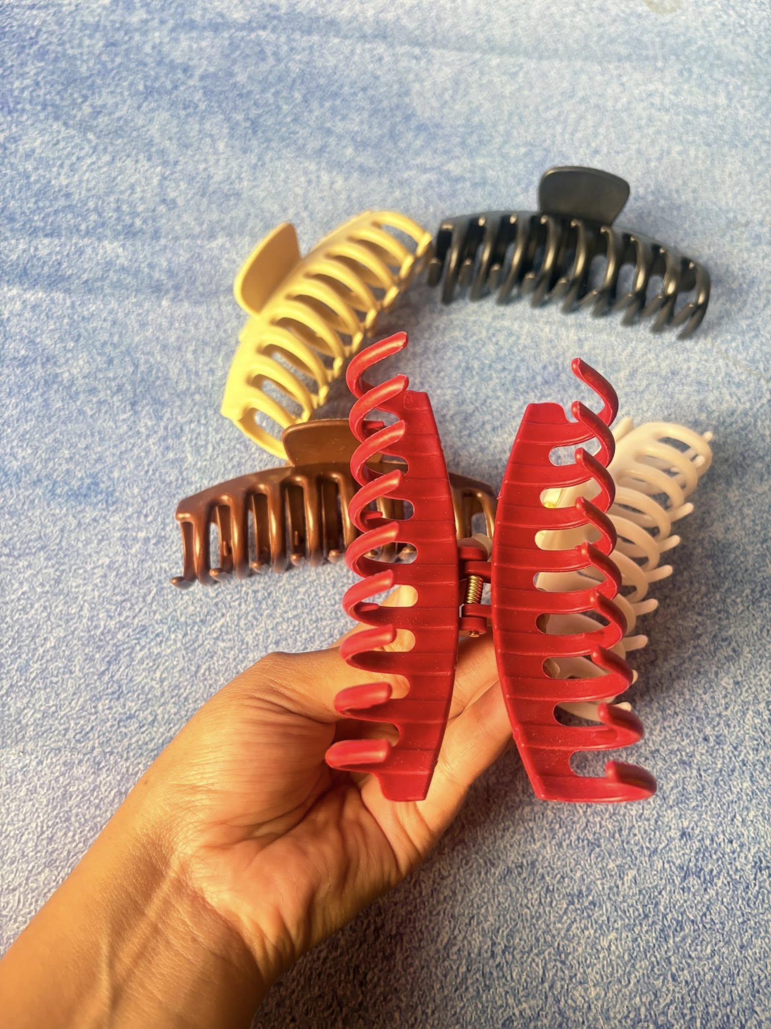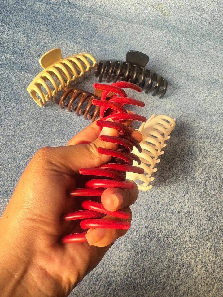 Silicone claw clips are a modern, comfortable, and durable alternative to traditional plastic hair clips. Made from soft-touch silicone-coated material, they provide a strong yet gentle grip that holds hair securely without pulling, breaking, or leaving dents.